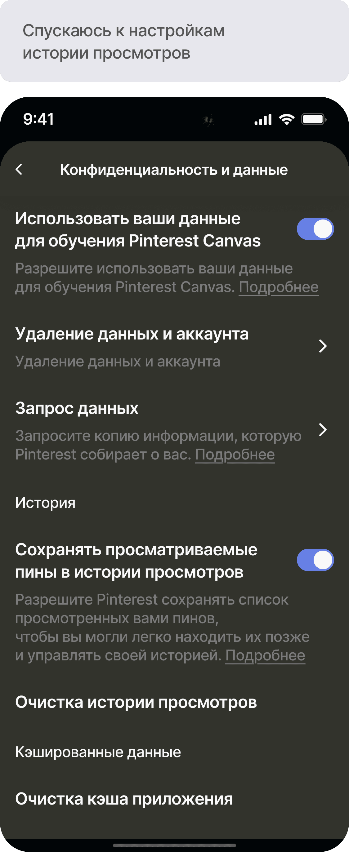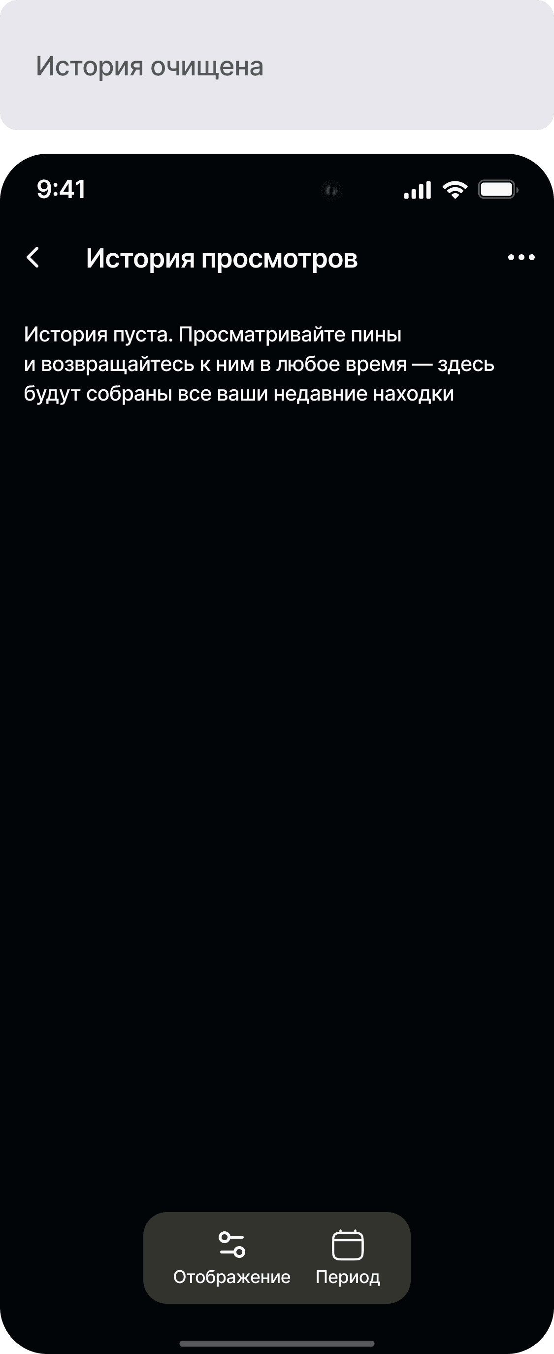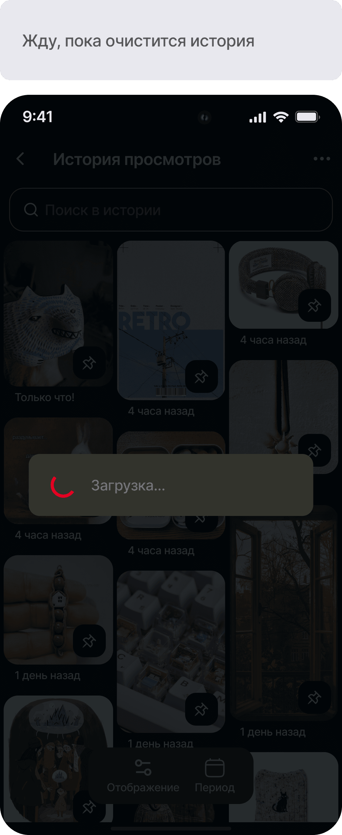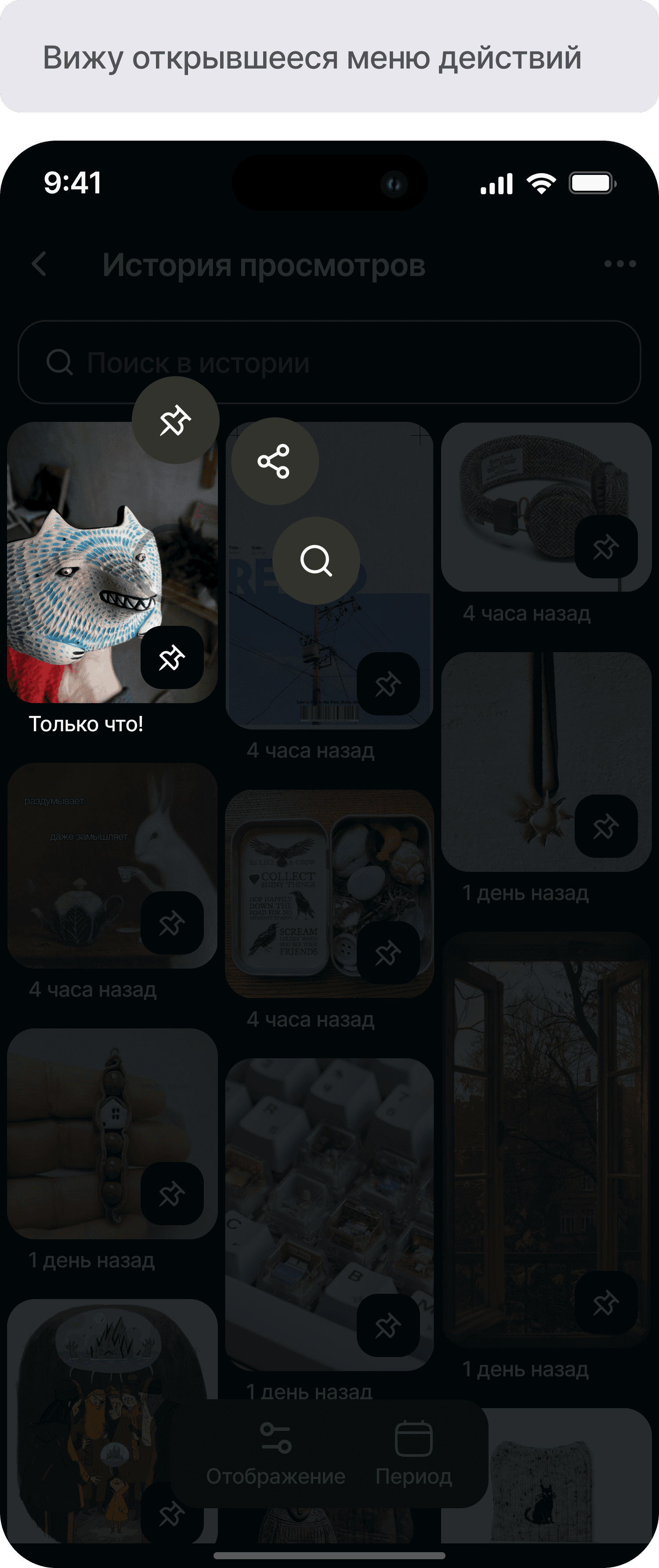 Разработать функционал истории просмотров для приложения Pinterest