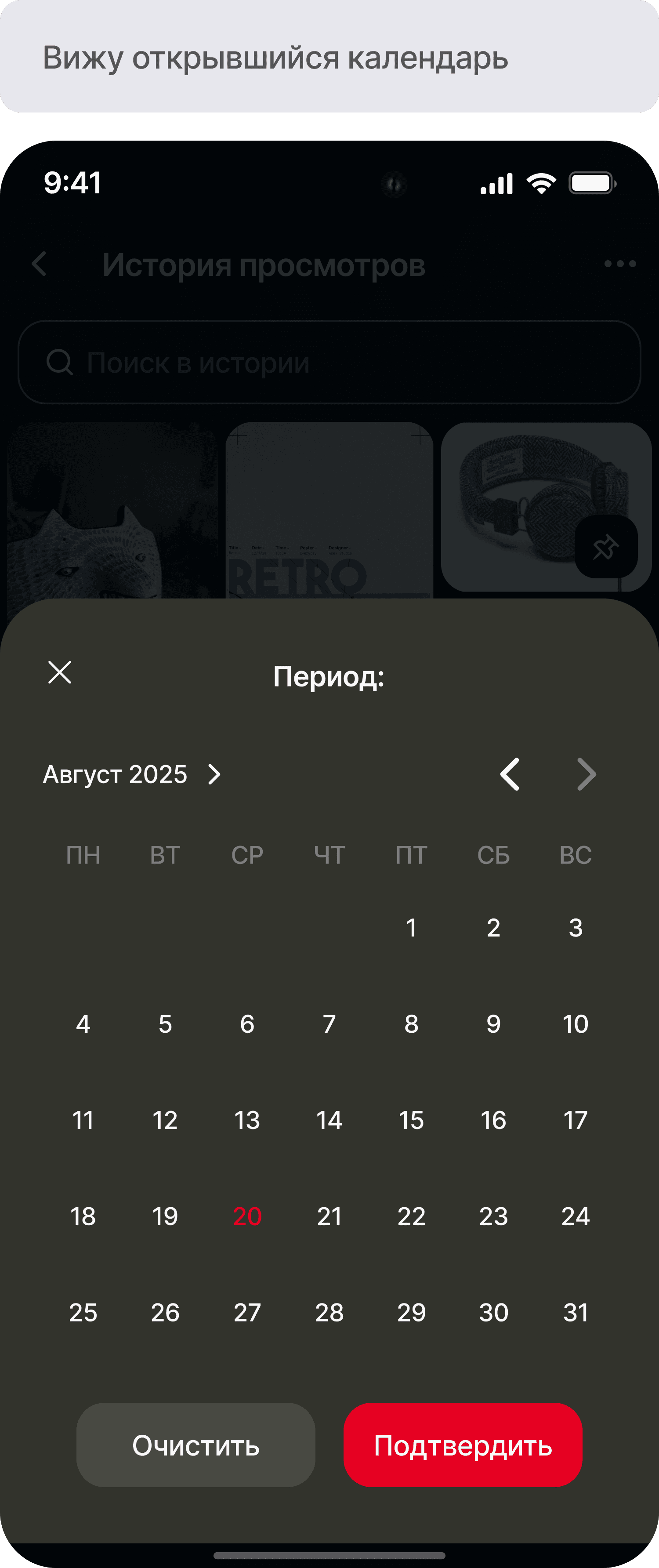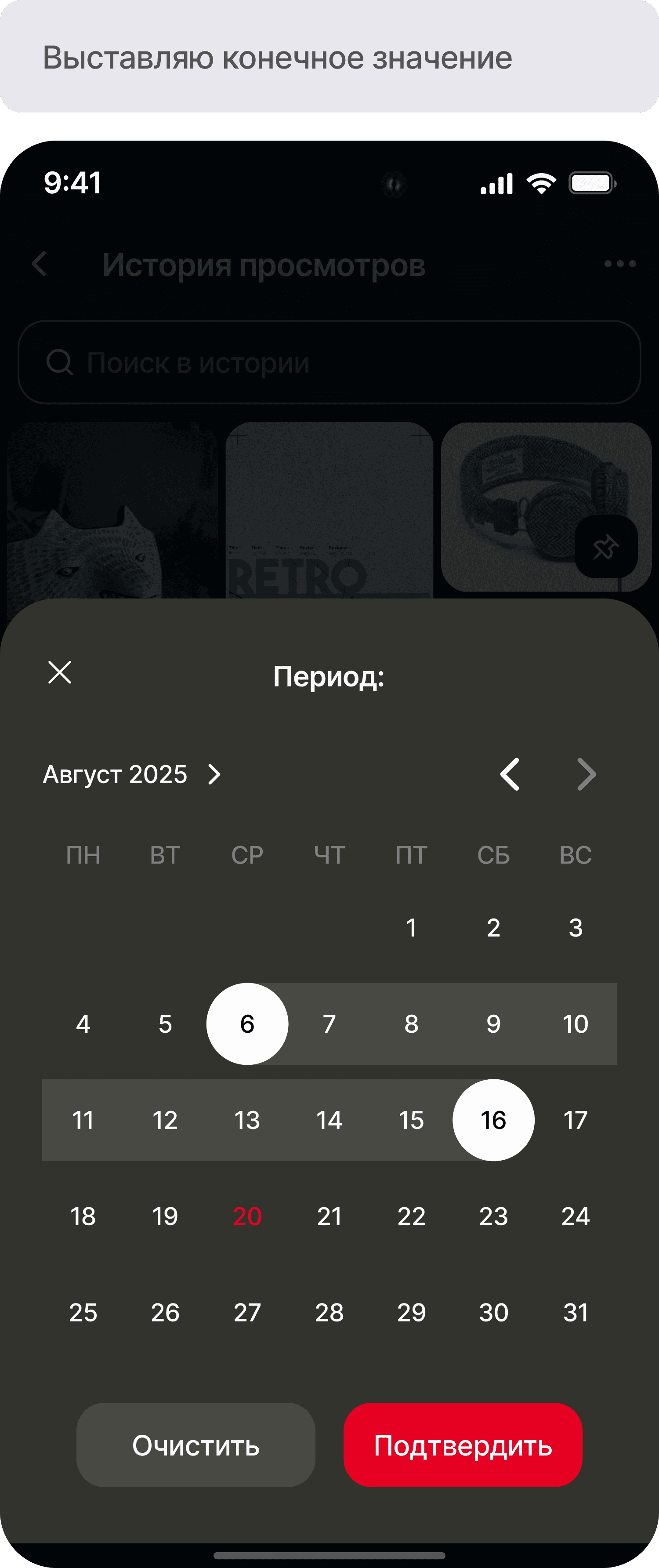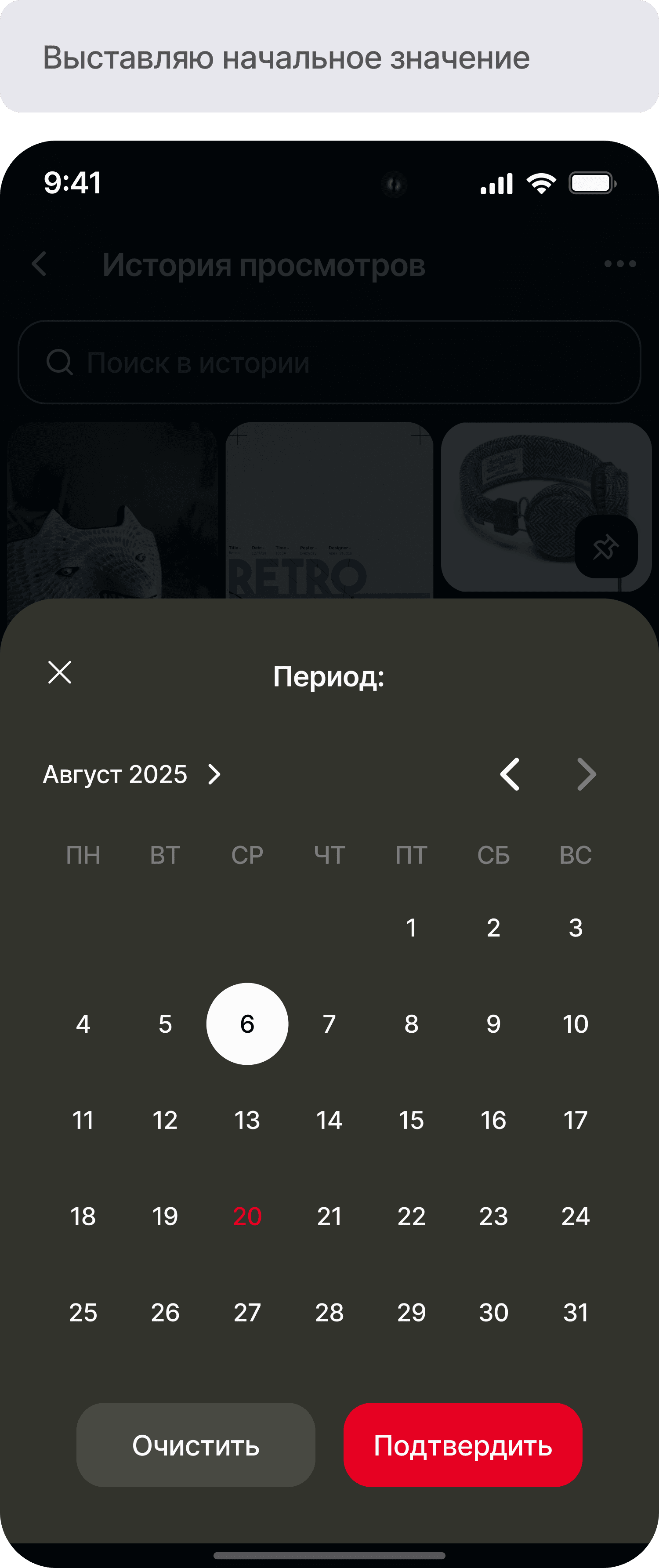 Фильтрация истории по дате