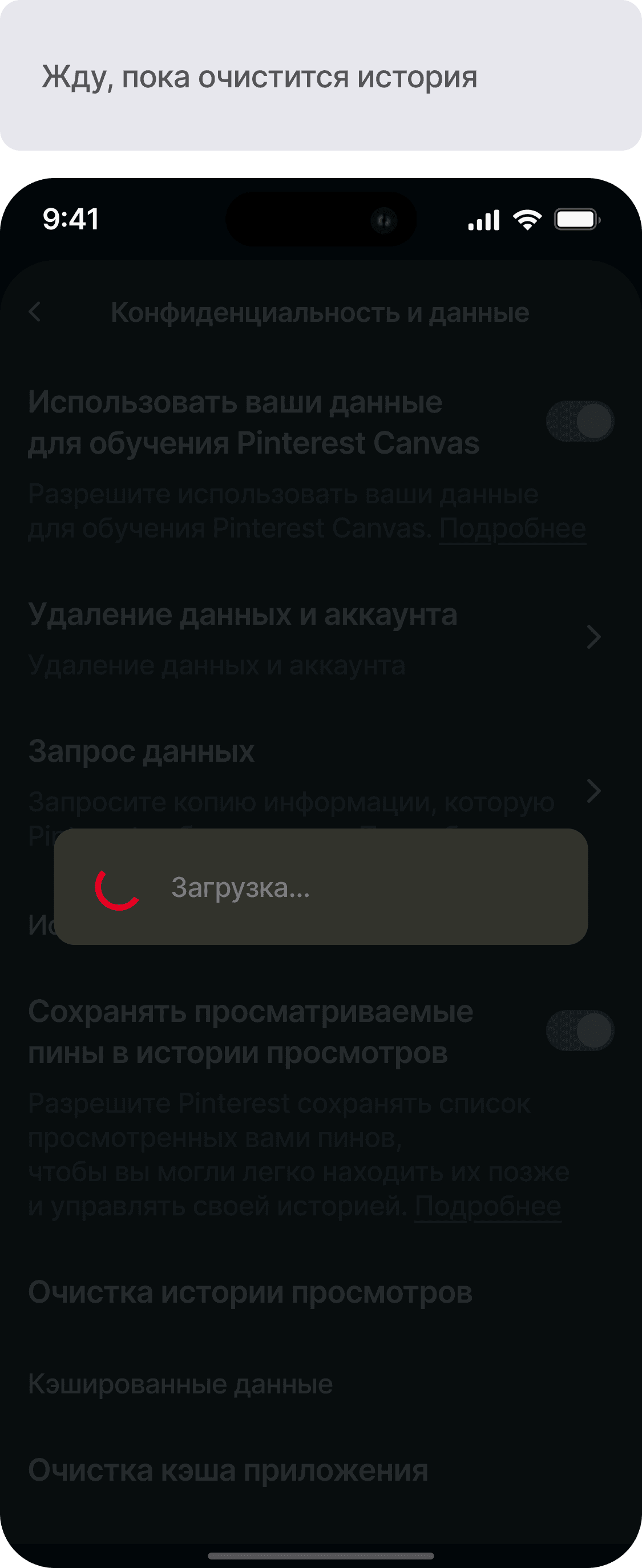 Очистка истории через настройки